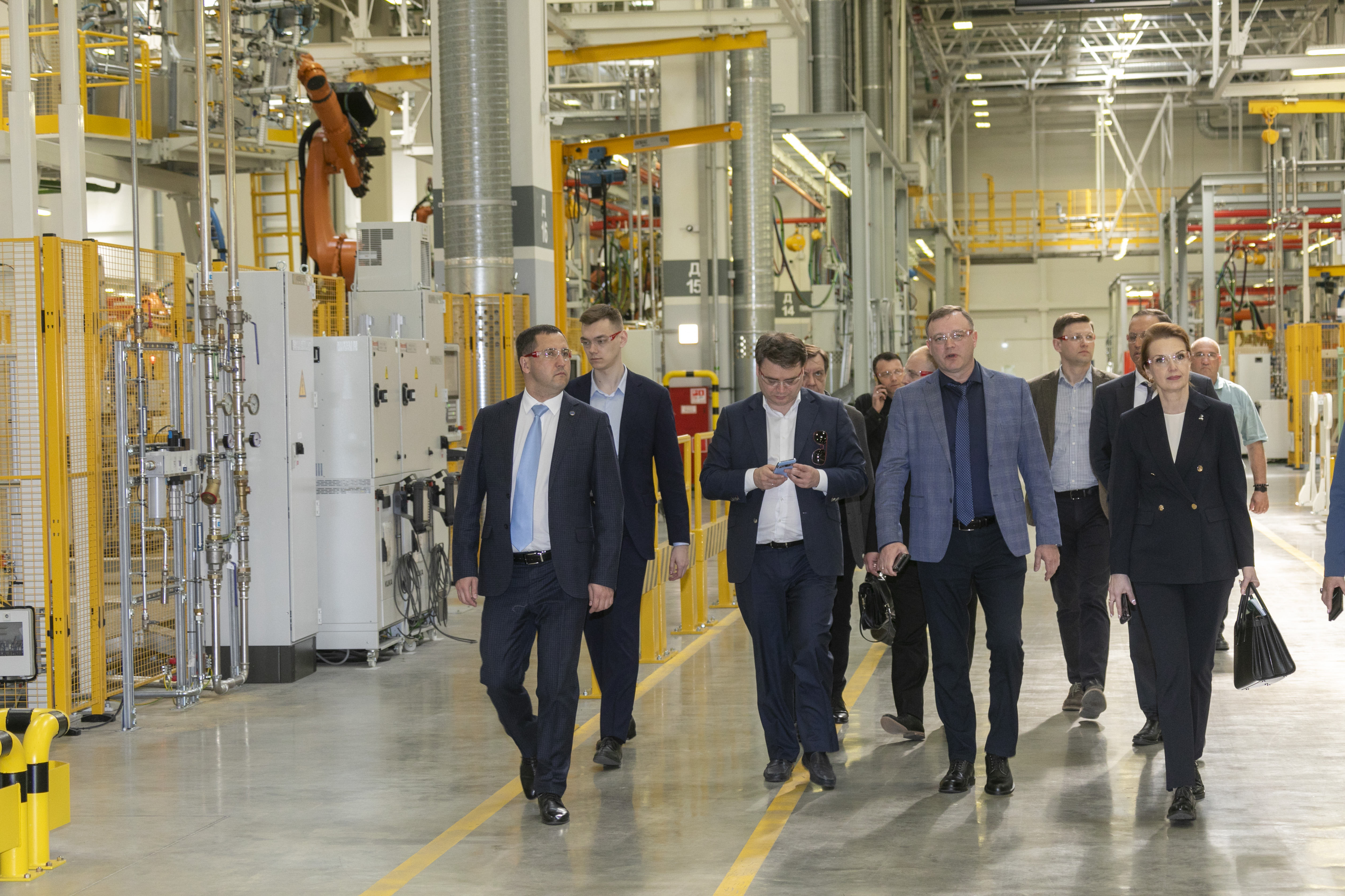 В ходе ознакомительной экскурсии представители Минпромторга РФ посетили самый новый завод компании с высокой степенью автоматизации – завод каркасов кабин. Также членам делегации продемонстрировали роботизированный производственный участок на прессово-рамном заводе.