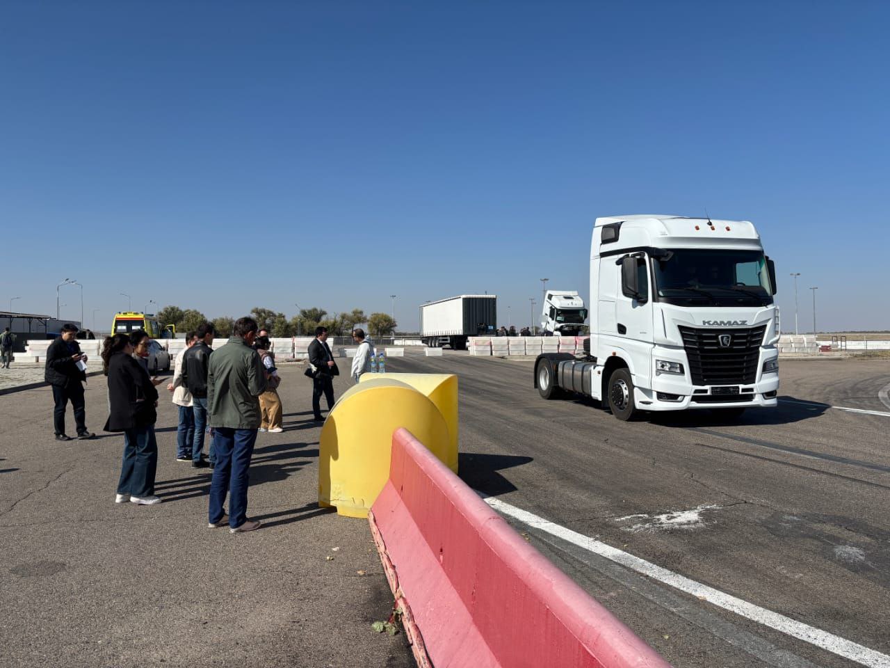 На следующий день перешли к практике: участникам предоставили возможность лично изучить автомобиль КАМАЗ-54901 и осмотреть шторный полуприцеп -9226. Кроме того, на закрытом гоночном автодроме компания организовала тест-драйв автомобиля КАМАЗ-54901. В нём приняли участие 28 представителей дилерской сети Средней Азии. В ходе тестовых заездов инструкторы по эксплуатации автотехники Торгово-финансовой компании «КАМАЗ» уделили внимание обучению водителей приёмам экономичного и безопасного управления автомобилем поколения К5.