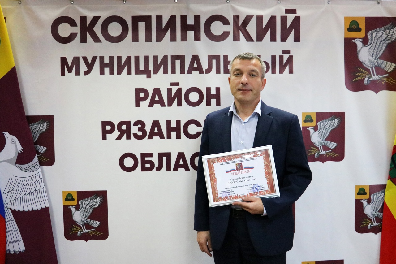 Занесение на районную Доску почёта – это высокая оценка достижений компании и вклада коллектива в развитие промышленности региона. Свидетельство о занесении трудового коллектива на Доску почёта Скопинского района вручено начальнику отдела управления персоналом ООО «СААЗ Комплект» Владимиру Козлову.
