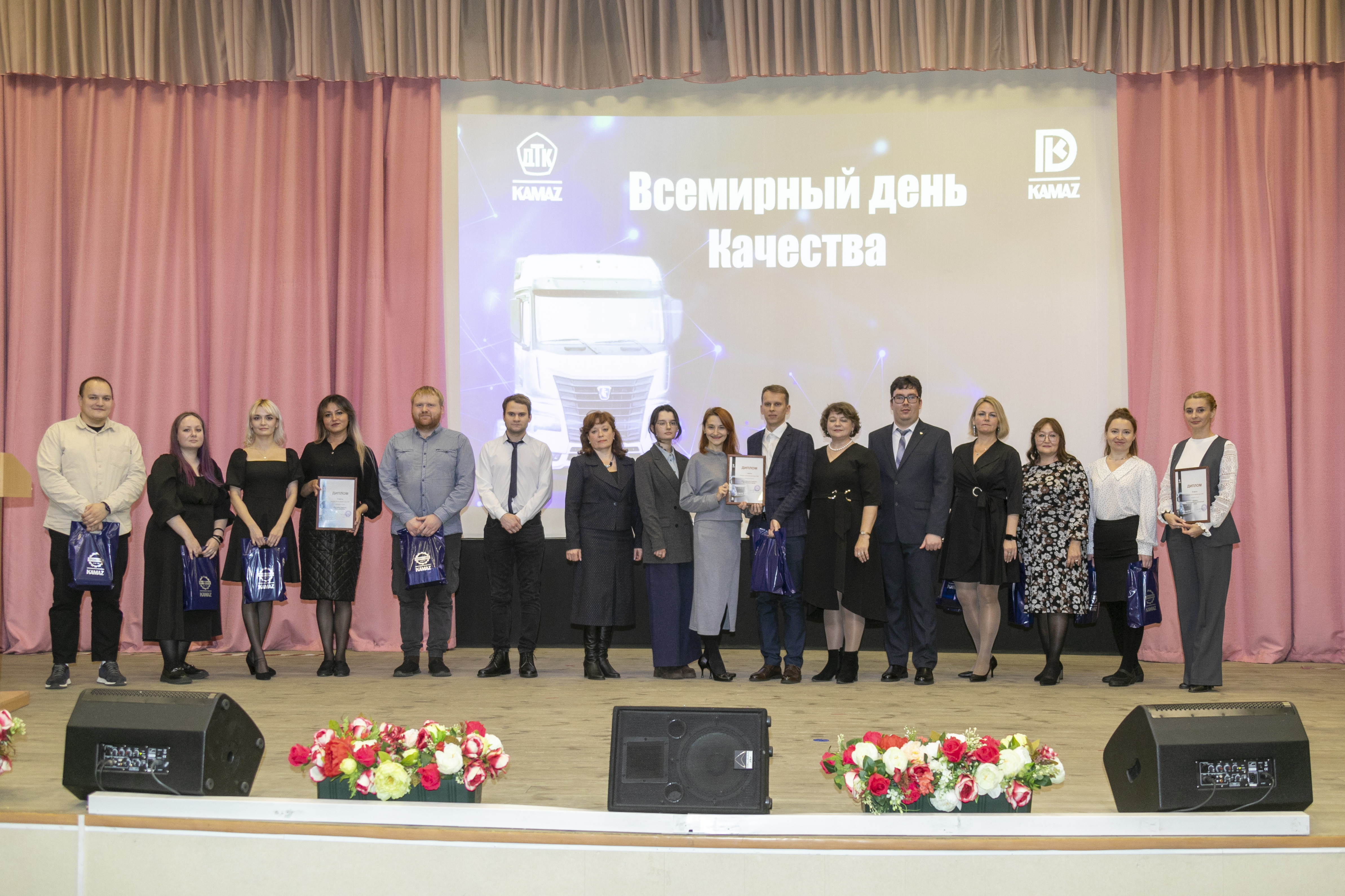 Традиционно во Всемирный день качества, который в этом году отметили 14 ноября, департамент качества ПАО «КАМАЗ» объявил имена победителей конкурса. В первой номинации лучшими стали начальник бюро специальных процессов технологического отдела производства стального литья литейного завода Денис Вовк, начальник бюро анализа стабильности технологических процессов отдела технологического обеспечения качества департамента качества Ленар Зарипов и начальник технологического отдела арматурно-сборочного производства завода двигателей Марсель Гумеров. Во второй номинации победителями признаны мастер цеха сборки-сварки кабин прессово-рамного завода Вероника Матвеева, мастер цеха сборки коробки переменных передач завода запасных частей и компонентов Артур Мухаметов, мастер цеха комплектации и сдачи автомобилей автомобильного завода Дмитрий Коротаев. В третьей номинации победили главный специалист по оценке качества тяжёлых мостов отдела приёмки экспортной продукции департамента качества ПАО «КАМАЗ» Владислав Хасаншин и начальник бюро системы менеджмента качества, стандартизации, патентно-лицензионной и рационализаторской работы отдела системы менеджмента качества кузнечного завода Евгений Кокорин.