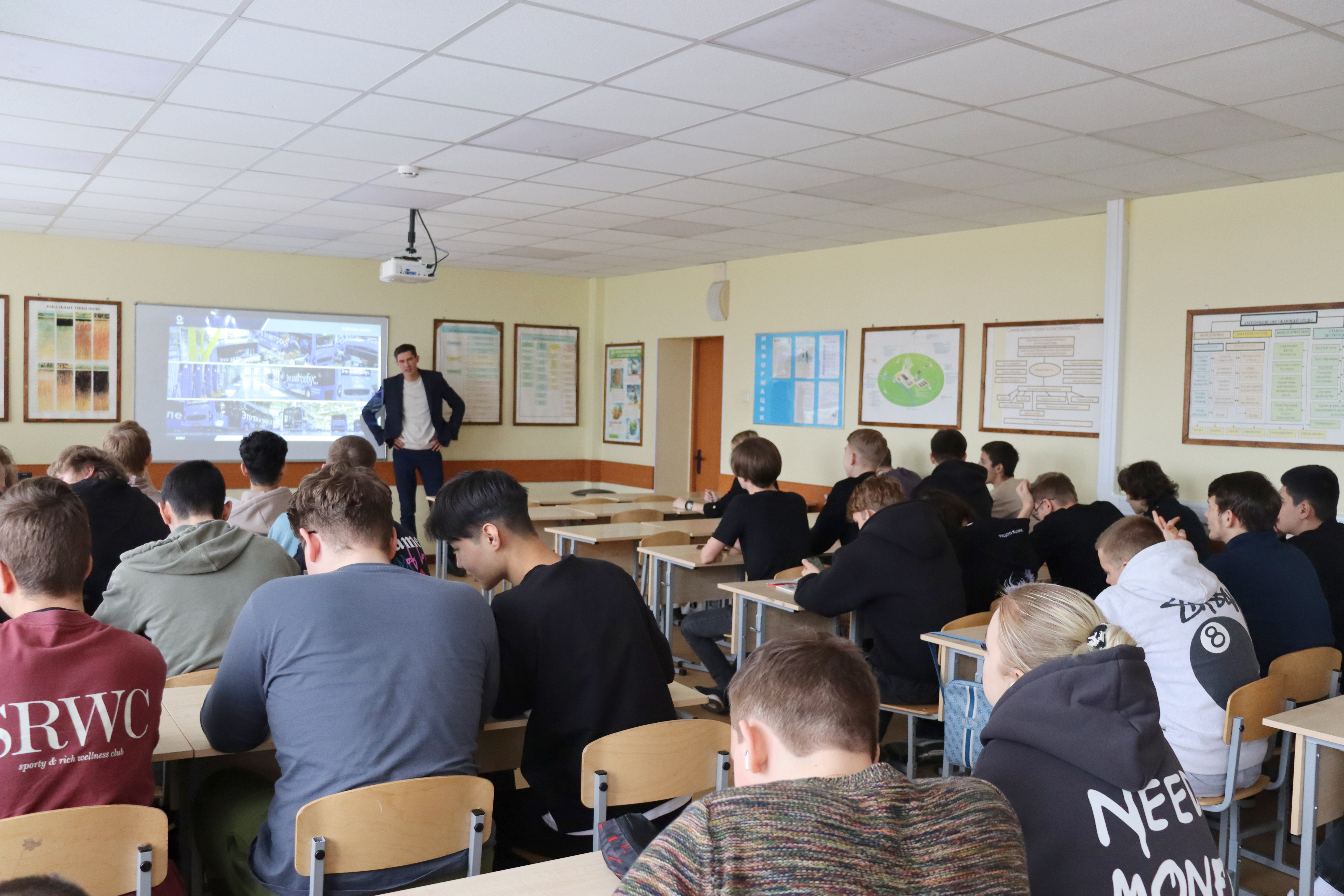 В ходе лекции студенты ознакомились со спецификой сервисных работ на станциях технического обслуживания электробусов и автобусов КАМАЗ, узнали о современном оборудовании и применяемых передовых технологиях. Также ребятам рассказали о новом учебном центре, строительство которого ведётся на территории Красной Пахры в Москве по инициативе «КАМАЗа». Кроме того, будущие специалисты получили полезные рекомендации по развитию карьеры в технических областях, задали вопросы о карьерных возможностях в компании «СЭТранс». В завершение встречи студентов пригласили на ознакомительную экскурсию в электробусные парки Москвы.