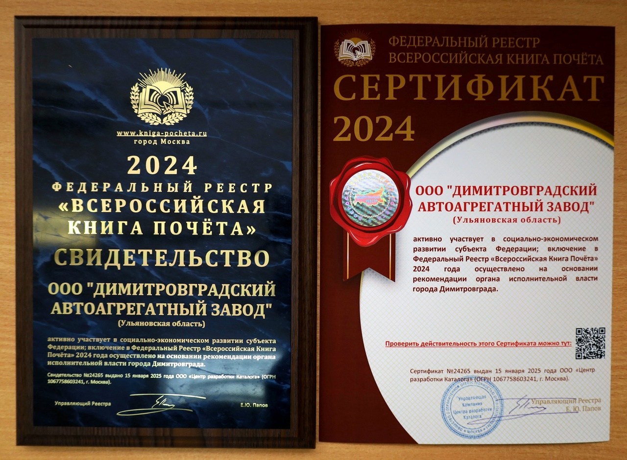 Данное решение было принято на основании рекомендации органа власти города Димитровграда, что свидетельствует о признании значительного вклада компании в социально-экономическое развитие региона и страны. Включение в Федеральный Реестр «Всероссийская Книга Почета» является подтверждением высокого уровня профессионализма, надёжности и деловой репутации ООО «ДААЗ». Это почётное звание присуждается предприятиям, демонстрирующим стабильные экономические показатели, активно внедряющим инновационные технологии, а также вносящим значительный вклад в развитие своей отрасли и улучшение жизни общества.