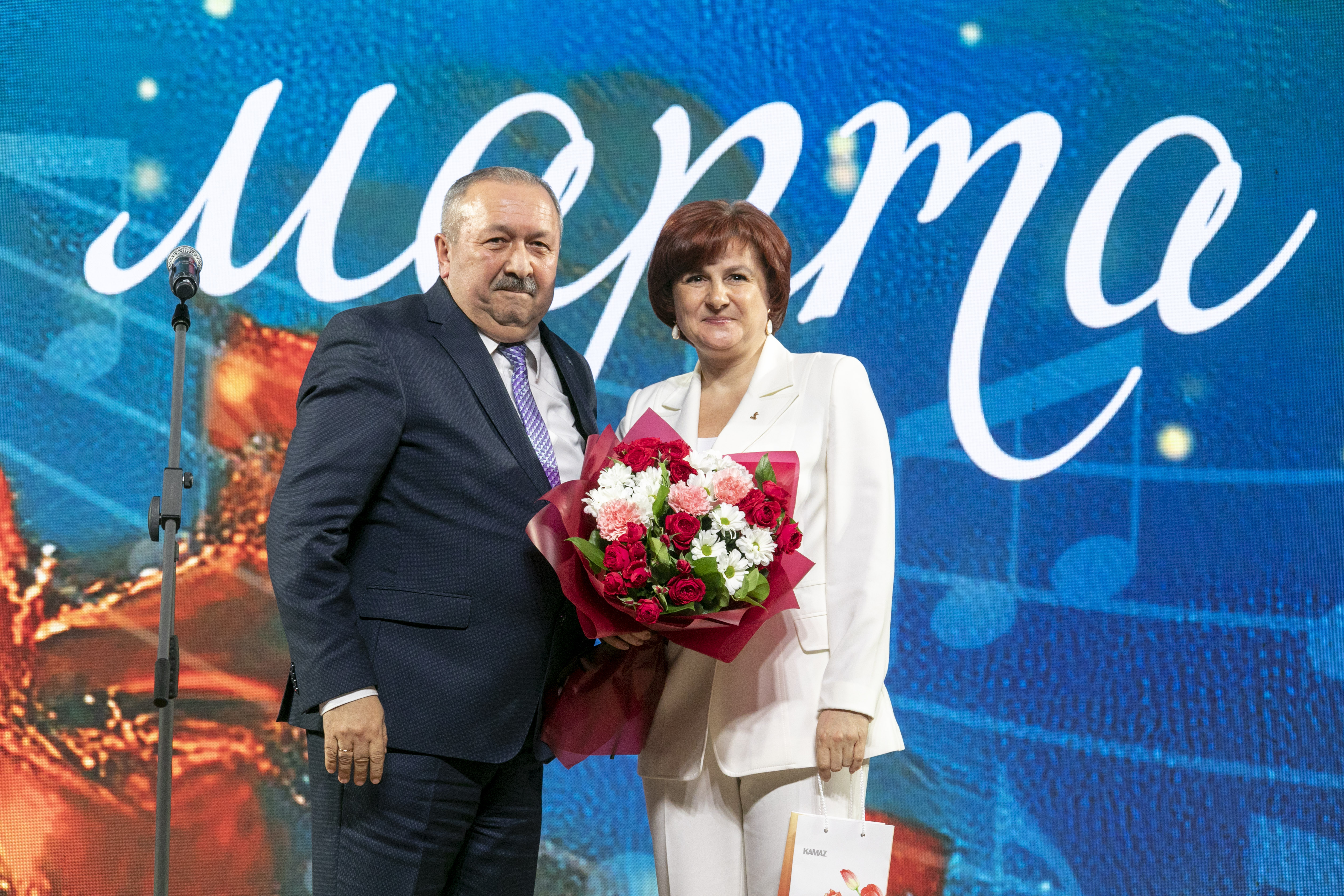 В ходе праздничного мероприятия прошла традиционная торжественная церемония награждения. Награды от компании получили 12 сотрудниц «КАМАЗа», также была вручена Почётная грамота мэра г. Набережные Челны, ещё 12 работниц автогиганта отмечены Благодарностью мэра и руководителя Исполкома города. Особое внимание было уделено главному специалисту блока по управлению персоналом, оргразвитию и корпоративному управлению Марине Терещенко – многодетной матери и супруге камазовца, ушедшего добровольцем на СВО в 2023 году. За это время её муж был дважды ранен, награждён Государственной наградой – медалью Жукова. Сейчас находится на реабилитационном лечении после тяжёлого ранения.