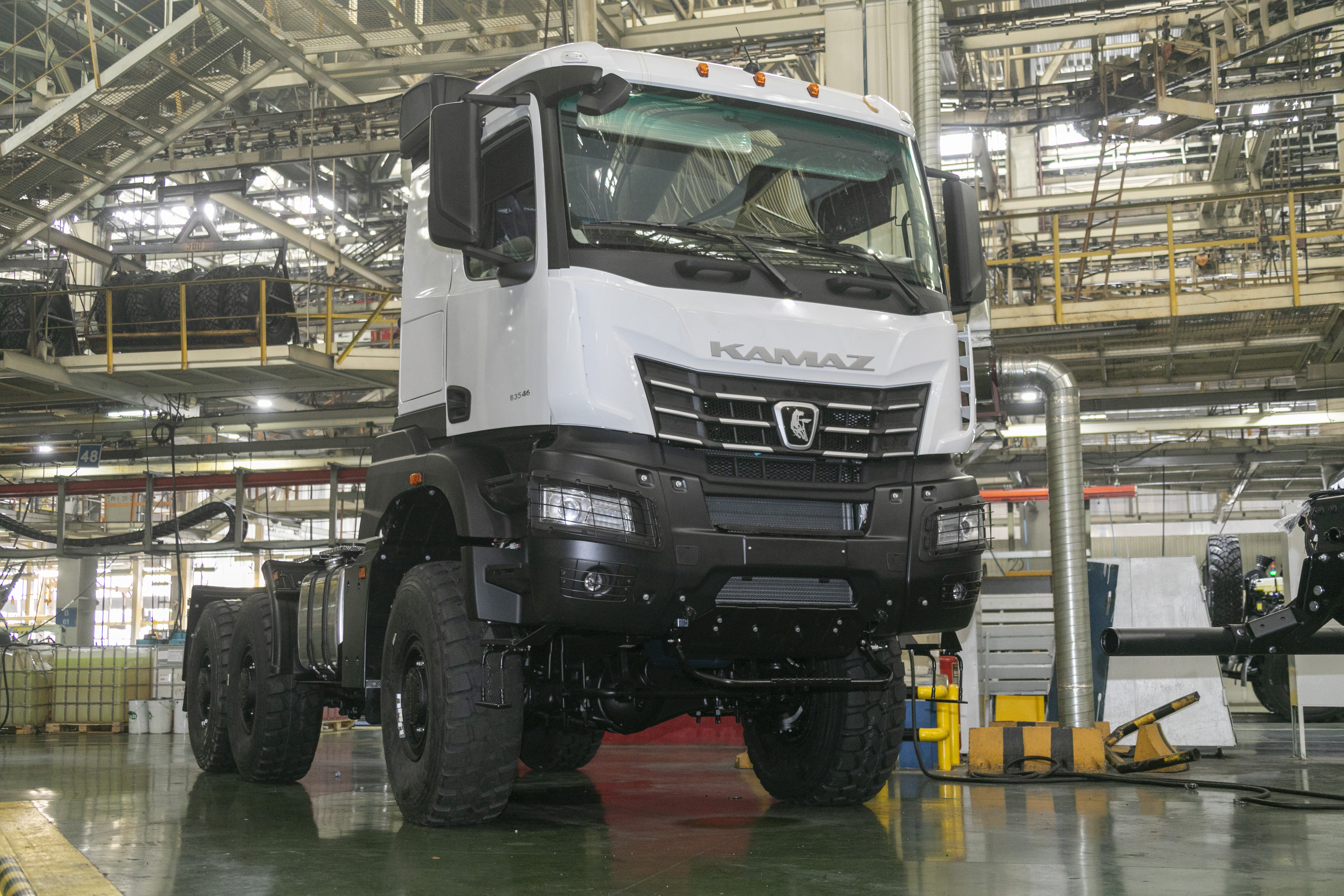 На автомобиль установлена кабина шириной 2300 мм с одним спальным местом, двигатель КАМАЗ Р6 мощностью 560 л.с., механическая коробка передач, применены шины размерности 16.00R20. Тягач оснащён системой автоматической подкачки шин с управлением через экран бортовой информационной системы. Грузовик отличается высокой степенью проходимости благодаря полному приводу: колёсная формула 6х6, все три моста – ведущие, с конической центральной передачей и планетарными колёсными редукторами. Также можно отметить высокий клиренс и прочный металлический передний бампер.