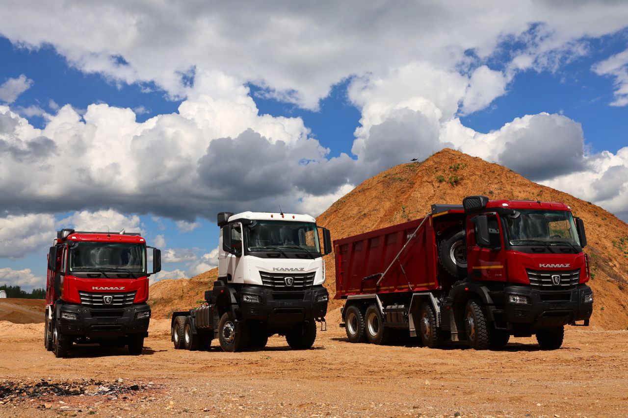 Также компания представила полноприводный самосвал КАМАЗ-65952 (6х6), который является представителем тяжёлого семейства грузовиков модельного ряда К5. За счёт усиленных мостов и рамы самосвал обладает увеличенной грузоподъёмностью (23,5 т), при этом полная масса автомобиля составляет 41 т. Грузовик оснащён шестицилиндровым рядным двигателем КАМАЗ Р6 мощностью 482 л.с. и механической 16-ступенчатой коробкой передач. Высокоэффективная автотехника предназначена для работы в условиях бездорожья. Самосвал создан на санкционно устойчивой компонентной базе, с применением современных высокотехнологичных конструктивных решений, что позволяет эксплуатировать его на крупных инфраструктурных объектах в сфере строительства, в горных и песчаных карьерах. В числе особенностей модели – внушительный клиренс, металлический трёхсекционный передний бампер и полный привод. Объём самосвальной платформы составляет 20 куб.м, днище кузова выполнено из высокопрочной стали. Новая кабина полностью соответствует современным стандартам безопасности и комфорта. Как и все представители новейшего модельного ряда К5, самосвал оснащён многофункциональным рулевым колесом и бортовой информационной системой с сенсорным дисплеем диагональю 10 дюймов.