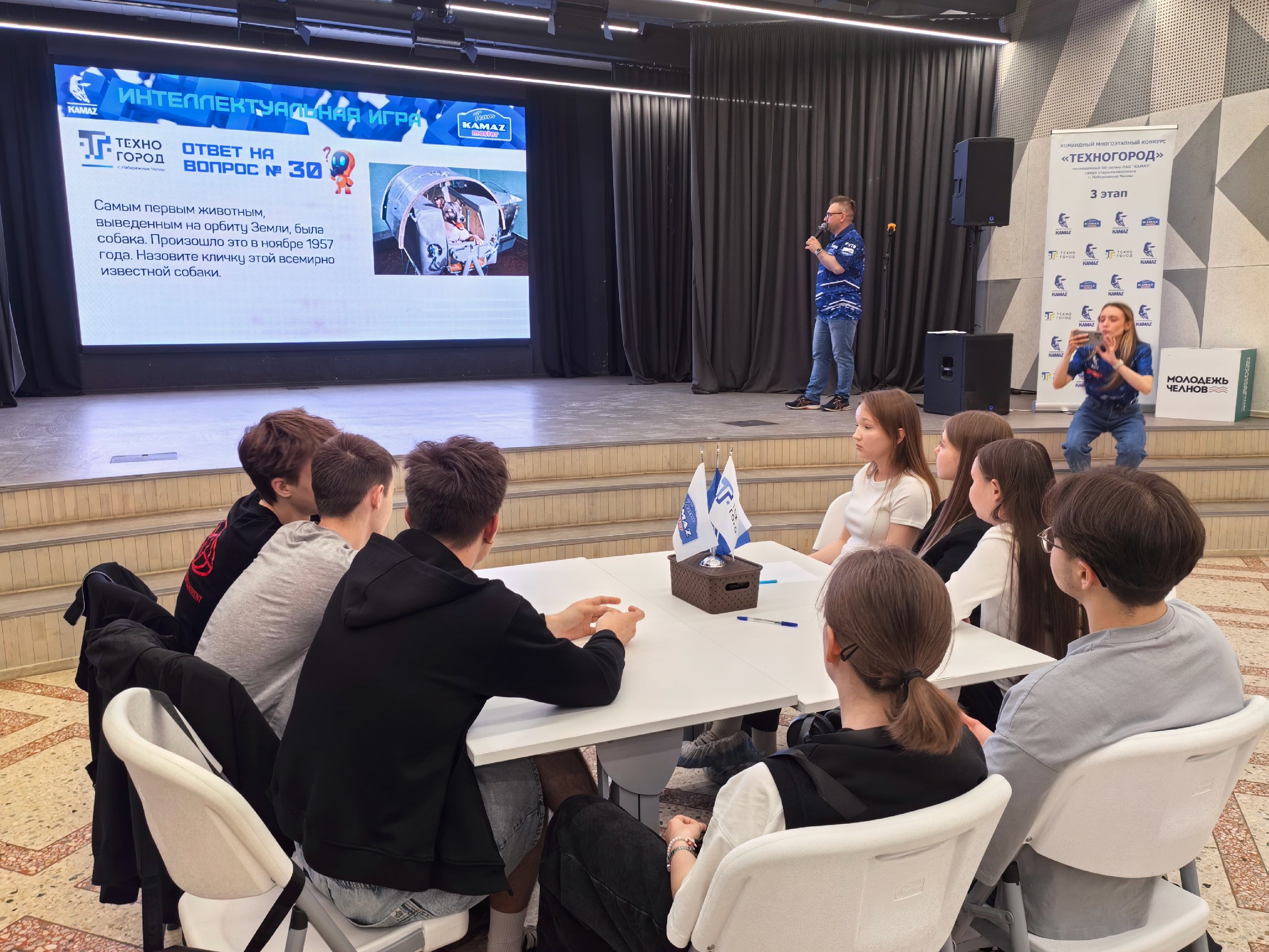 В молодёжном центре «Шатлык» состоялся третий итоговый этап командного интеллектуального конкурса «Техногород», посвящённого 55-летию со дня строительства ПАО «КАМАЗ». На протяжении учебного года представители восьми школ Набережных Челнов в формате квиза демонстрировали свои знания в области технических наук, автомобильного спорта и деятельности компании «КАМАЗ».