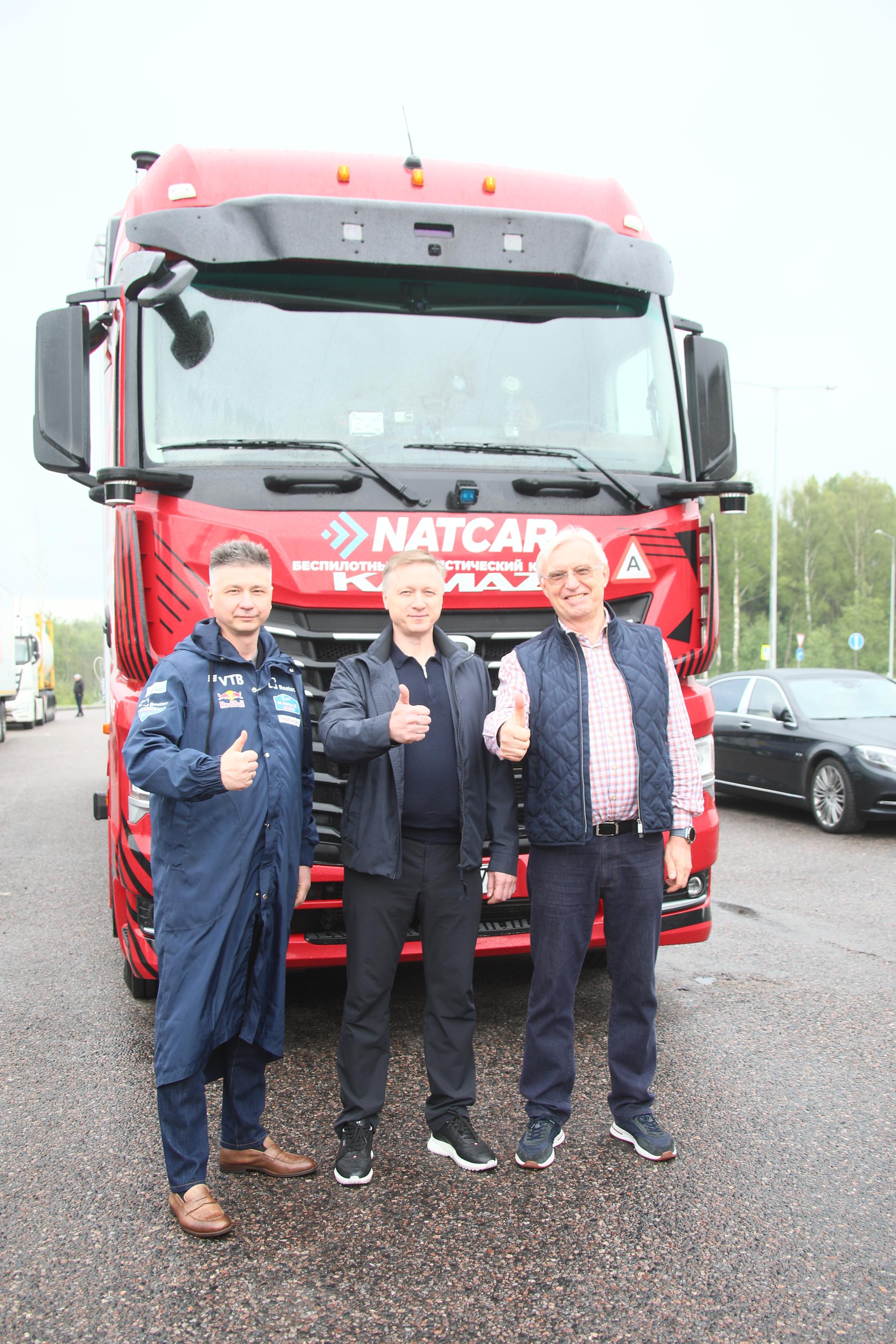 В проезде также принял участие заместитель министра промышленности и торговли РФ Альберт Каримов. Он проехал по трассе М-11 на пассажирском сиденье автономного магистрального тягача КАМАЗ первого поколения (МАЯК-1).