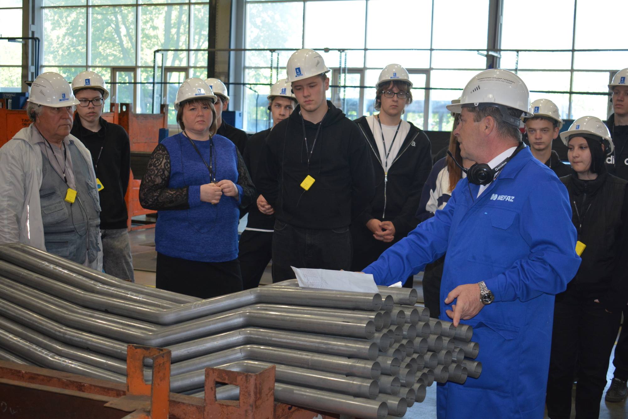 Традиционно экскурсия на «НЕФАЗ» началась с инструктажа по технике безопасности и правилам поведения на предприятии. Затем будущие машиностроители отправились в производственные цеха. Они посетили заготовительный цех, сварочные и сборочные цеха производства автосамосвалов и автобусного производства. Гости ознакомились с этапами изготовления современной грузовой и пассажирской техники, применяемыми технологиями и оборудованием. Также в ходе экскурсии студенты получили информацию об актуальных вакансиях и возможности трудоустройства на предприятие после окончания колледжа.