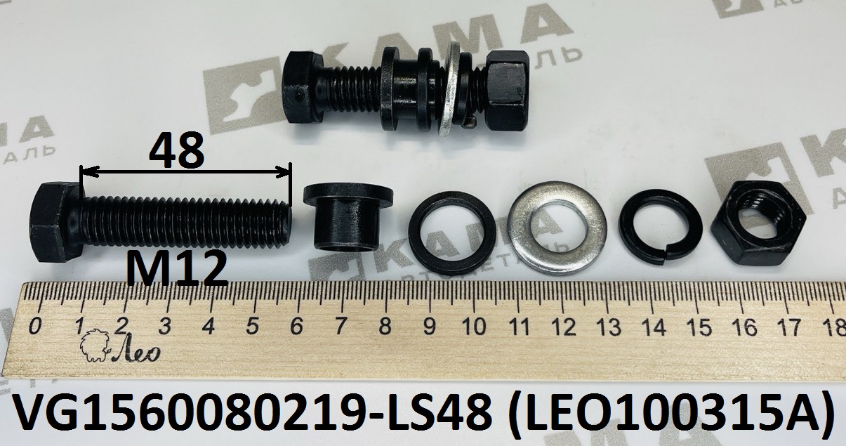 болт M12x48 крепления пластин ТНВД LEO100315A (1 втулка+2 шайбы+1 гайка) (VG1560080219) Хово