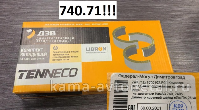вкладыши Коренные Р1,5(02) (94,25!!х100) 740.71-1000102-Р02! "Е4-Cоmmon Rail" (г.Димитровград)