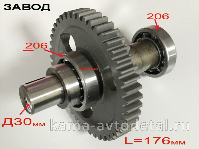 шестерня привода ТНВД в сб Д-30, L=176мм (подш-к 206/206) 740.51-1121010 (ЗАВОД)*