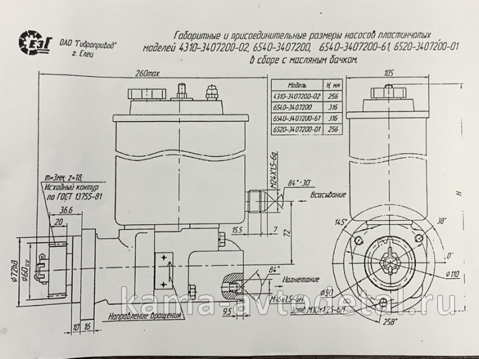 насос ГУРа 6520 -01!! (ЗАВОД г.Елец) 6520-3407200-01 (наруж. резьба "обратки" М24)