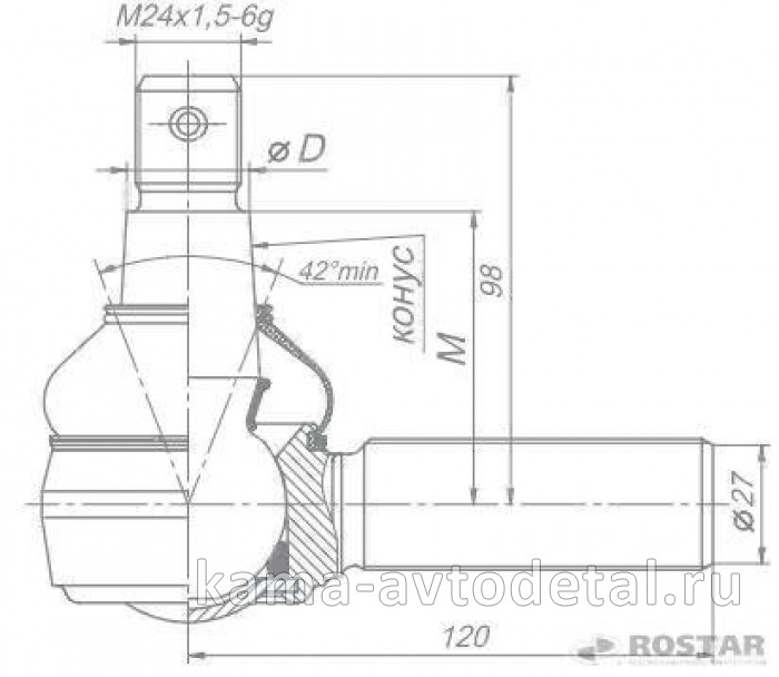 наконечник рулевой тяги продольной М30 (на авто 4310-6522) R180-3414060 (РОСТАР) 5425-3414061