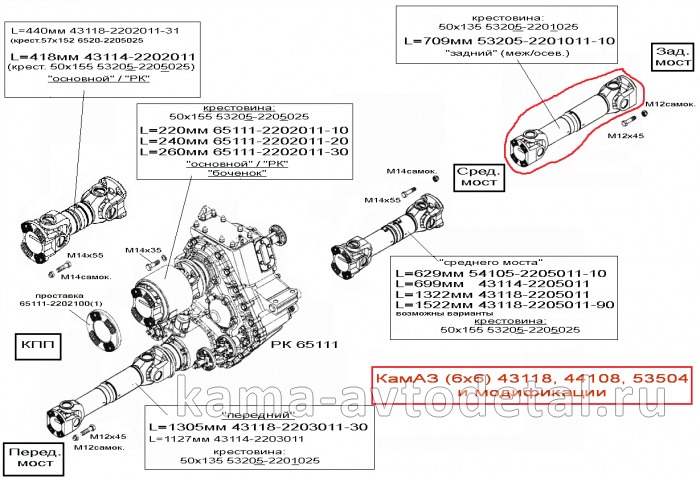 | вал кард. сред.моста L=699мм 43114-2205011 (Торц.шлиц, Больш.фланец, от РК до с.м.) | — | 43114-2205011 | 28 279 c