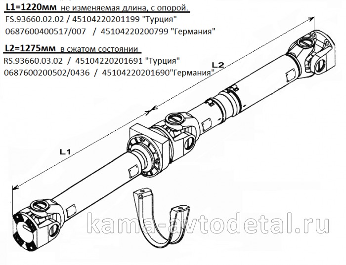 Данный карданный вал так-же применяется в приводе заднего моста автомобиля КамАЗ 43253 (4х4).
