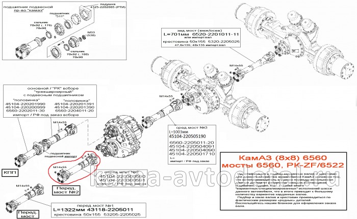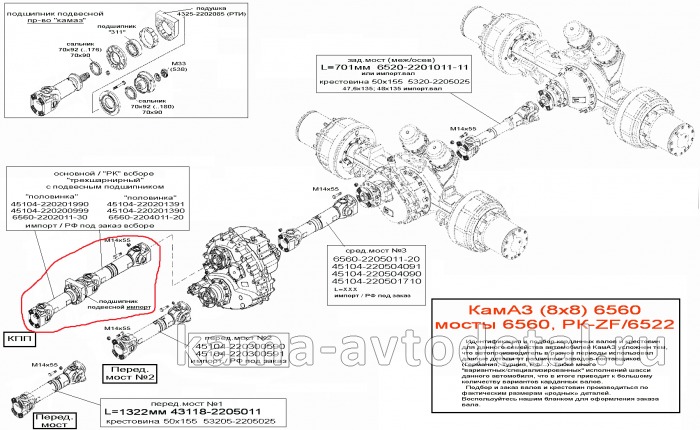 Идентификация и подбор валов и крестовин для автомобилей КамАЗ (6х6) семейства 6522 усложнен тем, что, автопроизводитель, в разные периоды, использовал данные детали от различных заводов-поставщиков (Германия, Турция, РФ...).
