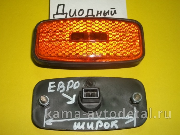 фонарь габаритный боковой ЖЕЛТЫЙ три Диода ШИРОКИЕ L-90 шпильки ЕВРОразъем (ГФ-1)