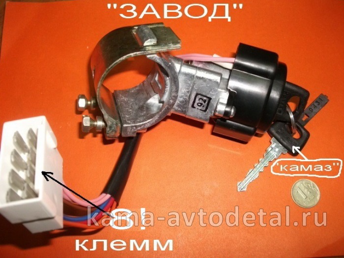 замок зажигания ЕВРО-3,4 в сборе (Завод, Ижевск-"Металл."с кронш-ом/пучек провод) 65115-3704