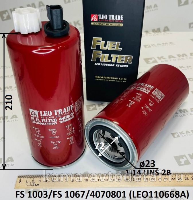 фильтр топливный FS-1003/1067 (Cummins) сепаратора с датчиком автомобилей Shacman(Шакман)/Shaanxi(Шанкси) X3000, DongFeng(ДонгФенг). Производство КНР, Экспортёр "LEO TRADE". (FS1067, 6313767X, 3959611, 3959611)