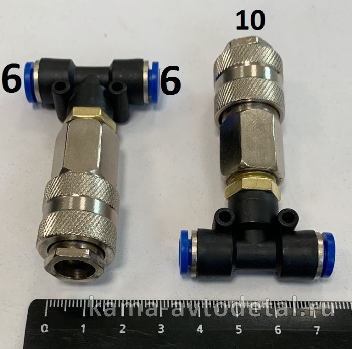 БРС быстросъем для пневмопистолета "фитинг тройник-МАМА"- трубка Д6 (мама D10)
