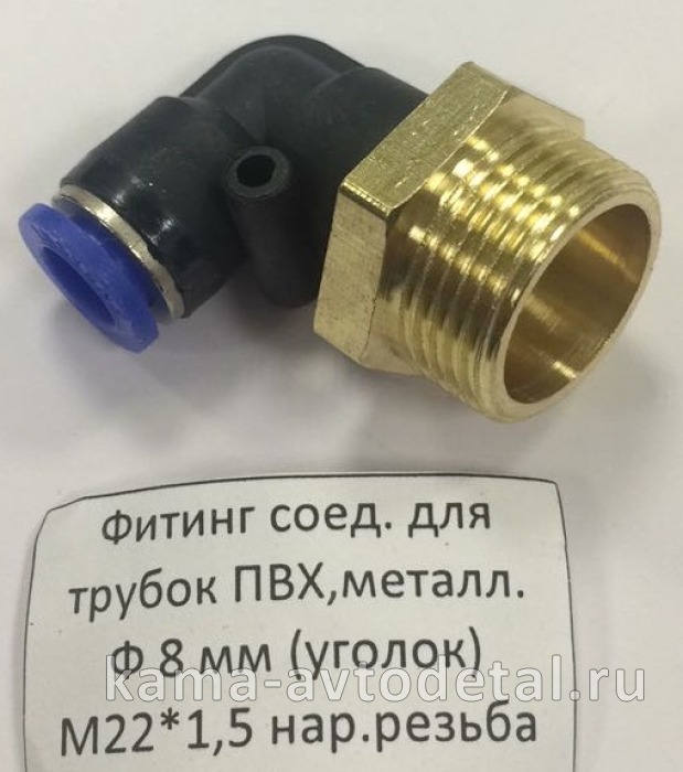 фитинг Металл+Пластмасс. Угловой М22хД8 (45104350604290(4490) / D6502 8-M22х1,5-S)(Ю69)